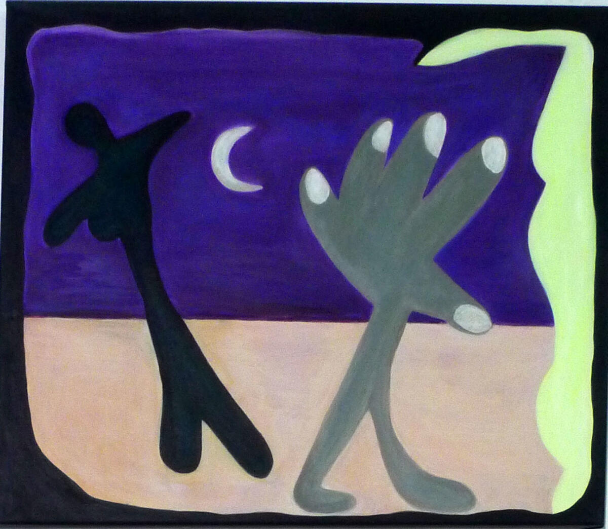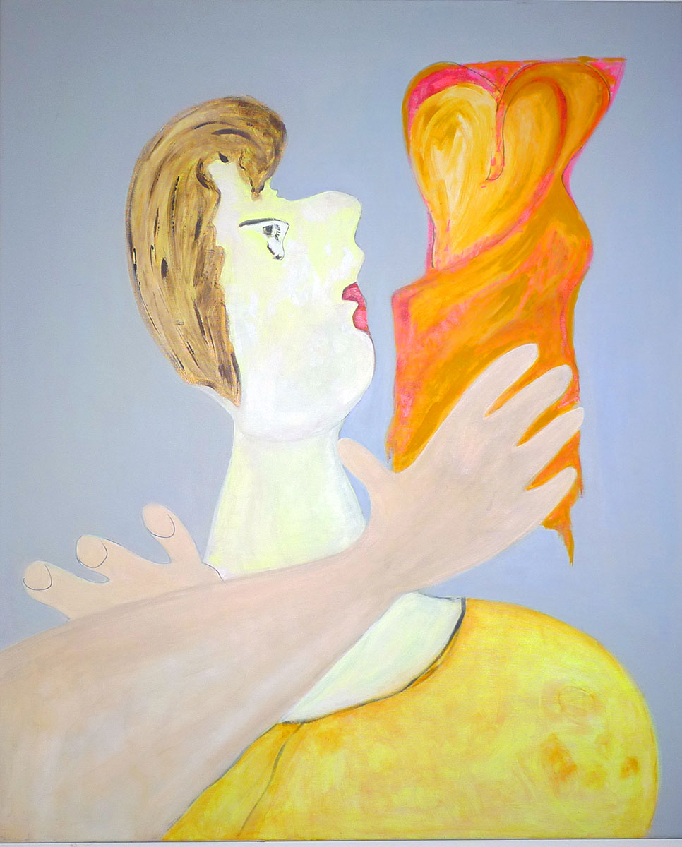Es gibt ihn also auch, den asymmetrischen, den nicht einvernehmlichen, den mehrdimensionalen Kuss, indem sich der dramatische Kern einer Beziehung, ja, sogar zivilisatorischer Verhältnisse offenbart. Strange kiss ist ein sehr sinnfälliges Bild für einen nicht näher zu bestimmenden, verstörenden oder beglückenden sinnlichen Moment, in dem vieles entstehen kann: Verrücktheit, Erkenntnis und vor allem: Kunst. Rouli Lecatsas Kunst. Es ist eine expressive, wenn nicht: expressionistische Kunst. Eine künstlerische Vorgehensweise, die Farben und Formen als Ausdrucksmittel einer Idee nimmt, Gefühle, seelisches Erleben und Assoziationen auslöst. Und das tut sie - wie das alle gute, weil eindrückliche, nachdrückliche Kunst tut - polyvalent, mehrdeutig, mehrwertig.